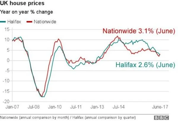 The specific example here comes from a chart published by the BBC in this article about the slowing of the UK housing market. The line chart shows the upwards and downwards trends of two house price trackers changing over time, simple enough stuff until you glance at the x-axis labelling at which point it is quite easy to becoming confused about judging the 'when'.
